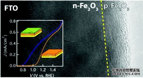Dunwei Wang課題組發表在Nature Communications的一篇工作中,在通過Fe2O3光陽和非晶Si光陰組成的器件,獲得了當時高約0.9%的太陽能轉化效率;(上圖,DOI:10.1038/ncomms8447)