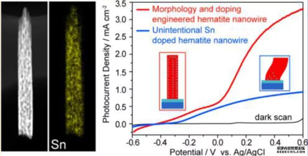 Fe2O3由于存在的氧缺陷問題,一般是n型半導體,因此常見的Fe2O3也都是作為光陽,但是通過合適的離子摻雜,也能夠改變其導帶位置,使其變為p型半導體,用于光陰還原反應。