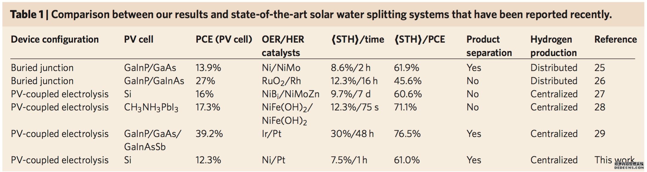 太陽(yáng)能產(chǎn)氫一直是人類孜孜追求的目標(biāo)。但如何實(shí)現(xiàn)大規(guī)模持續(xù)、廉價(jià)產(chǎn)氫是為棘手又亟待解決的問(wèn)題。在傳統(tǒng)電解槽結(jié)構(gòu)中,產(chǎn)氫和產(chǎn)氧在同一槽中。但這一方式在光電產(chǎn)氫領(lǐng)域受到了大的限制。如何整合太陽(yáng)能的轉(zhuǎn)化與電解水產(chǎn)氫成為關(guān)鍵。本文中,作者通過(guò)分離產(chǎn)氫、產(chǎn)氧過(guò)程,并利用輔助電作為“調(diào)節(jié)劑”,成功實(shí)現(xiàn)大面積太陽(yáng)能轉(zhuǎn)化與集中式產(chǎn)氫,太陽(yáng)能產(chǎn)氫轉(zhuǎn)換效率達(dá)到7.5 %。同時(shí),較之傳統(tǒng)光電化學(xué)體系,該方法在成本、安全性以及穩(wěn)定性上都具有一定的競(jìng)爭(zhēng)優(yōu)勢(shì)。